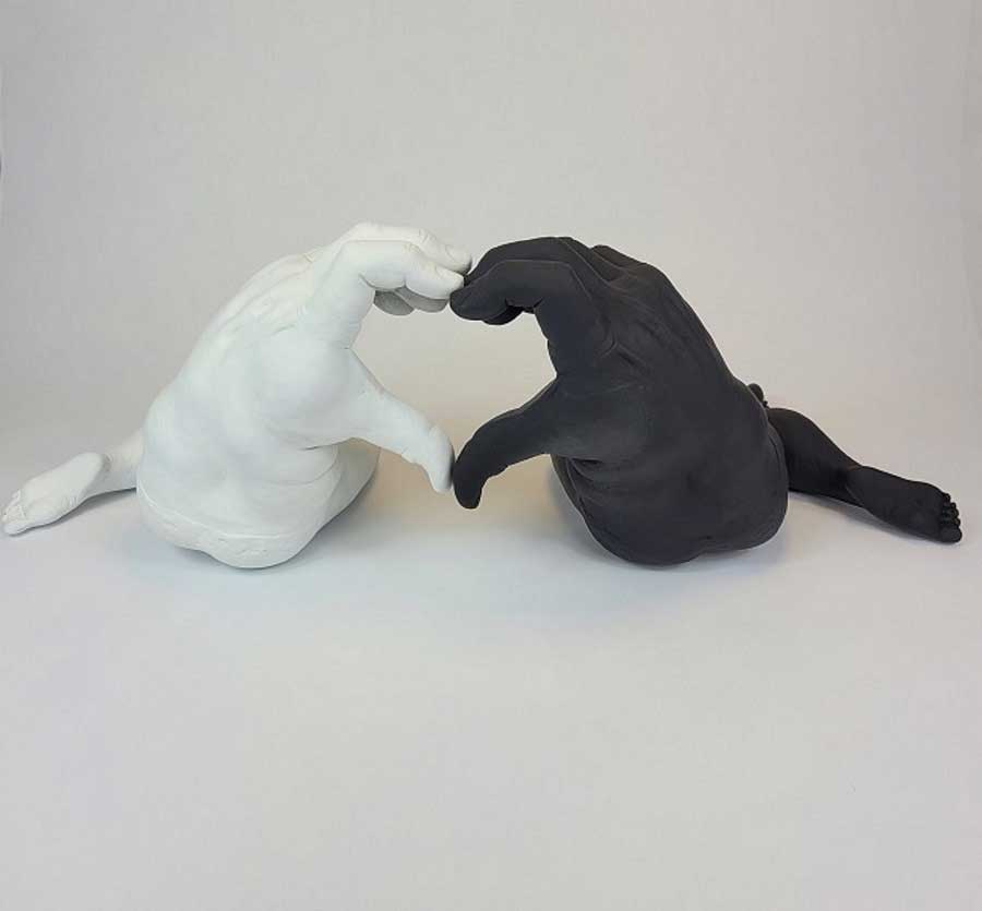 Mis cuerpos representados por manos indican la unión entre el alma y el ser, el poder de expresión y comunicación, la capacidad de tomar, dar y recibir. La composición entre mis personajes es una danza sutil llena de energías y conexiones, es una exploración íntima en cada gesto y cada movimiento cuenta una historia.