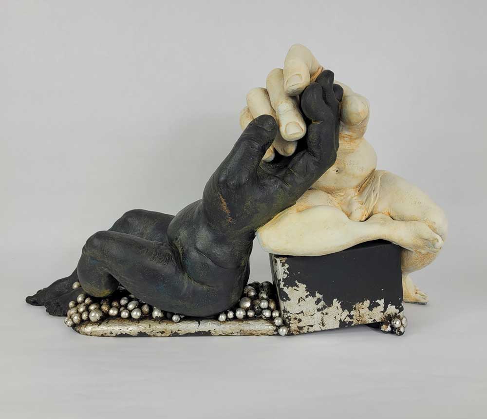 Después de la discusión. Mixta, madera, metal, arcilla. 64 × 34 × 10 cm.