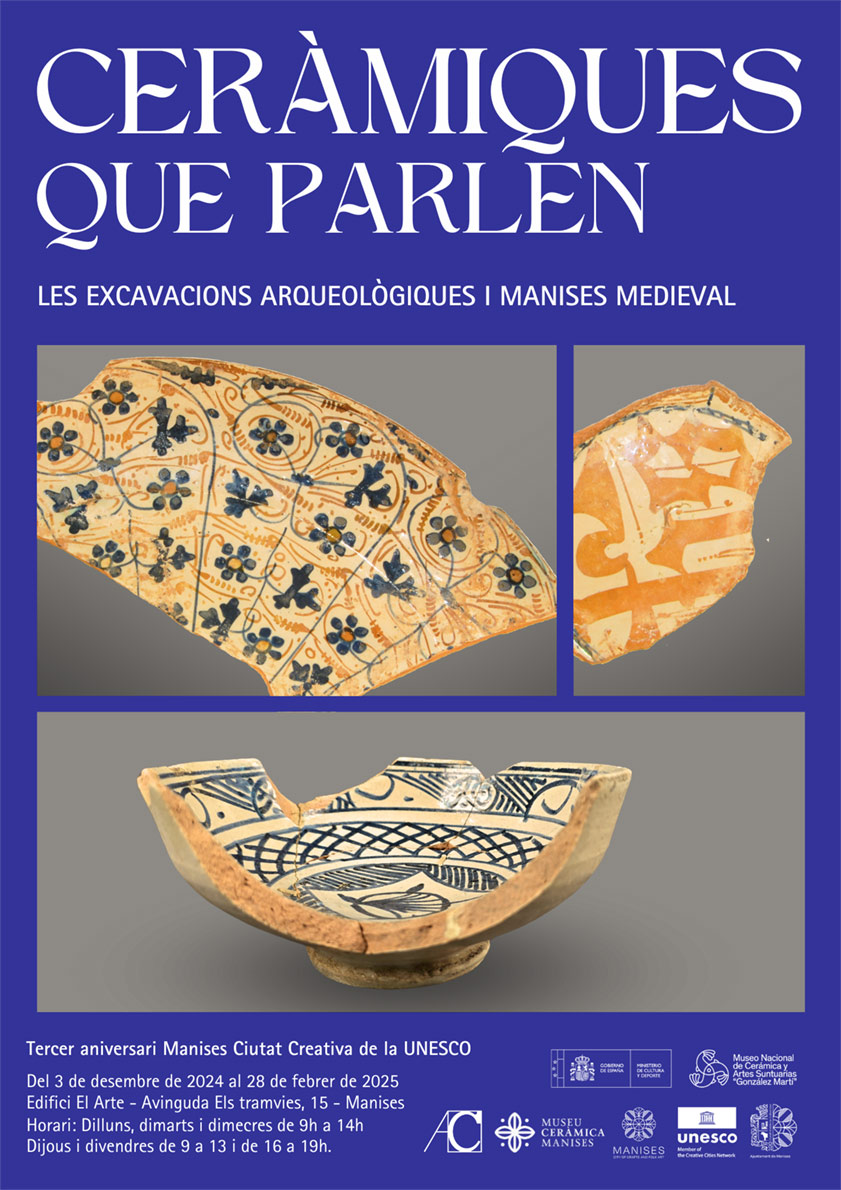 Hasta el día 28 de febrero de 2025 se puede visitar la exposición titulada “Ceràmiques que parlen” en la Sala MUMAF, de Manises, en la que se puede conocer una selección de piezas encontradas en las excavaciones arqueológicas realizadas durante los últimos años en el Barrio de Obradors de Manises