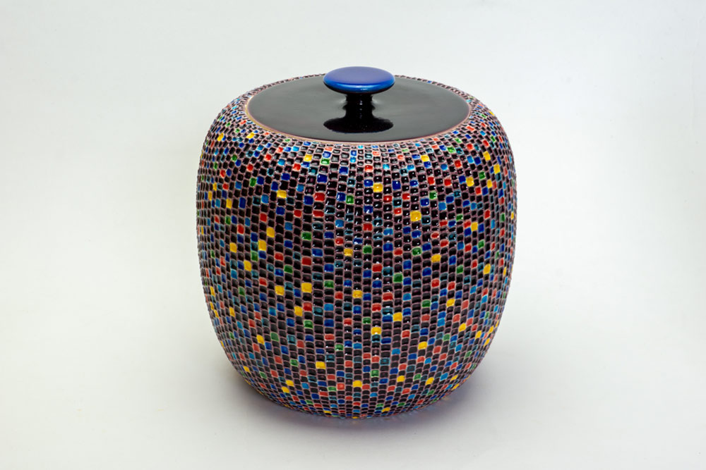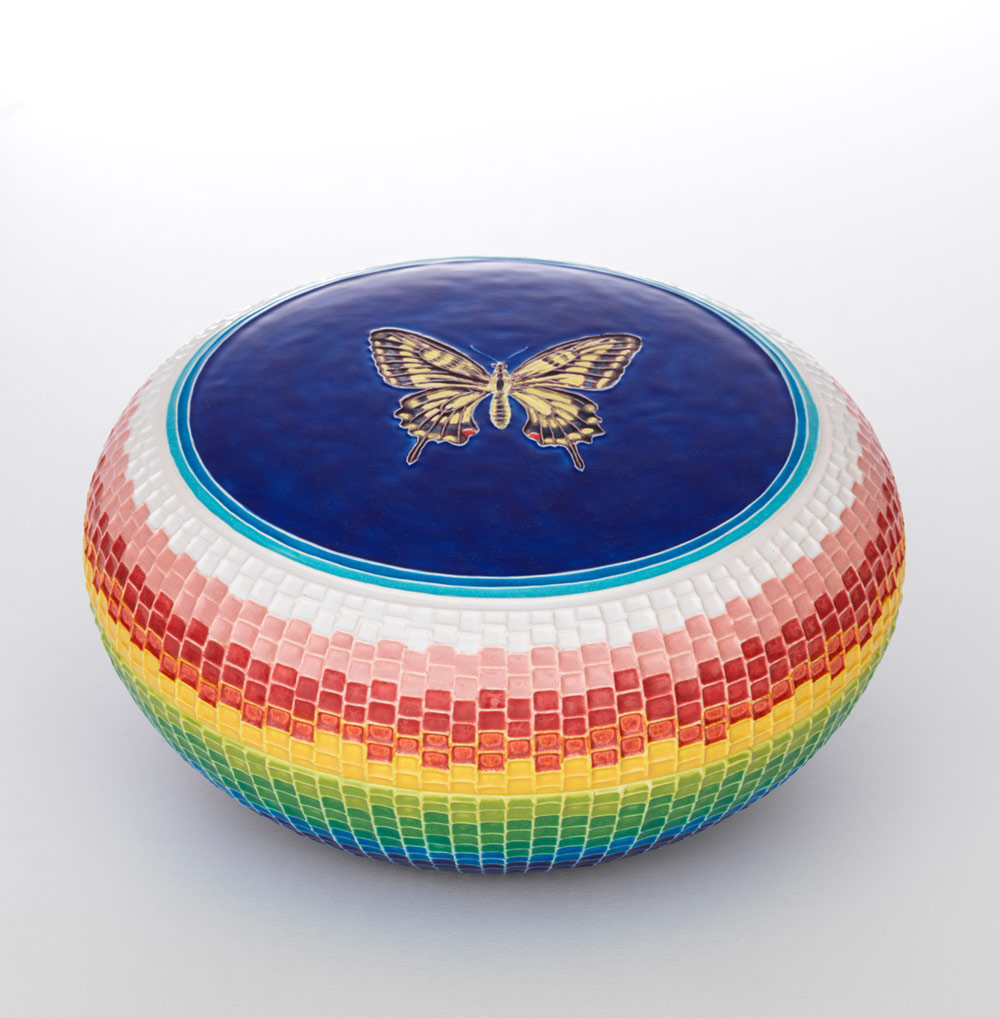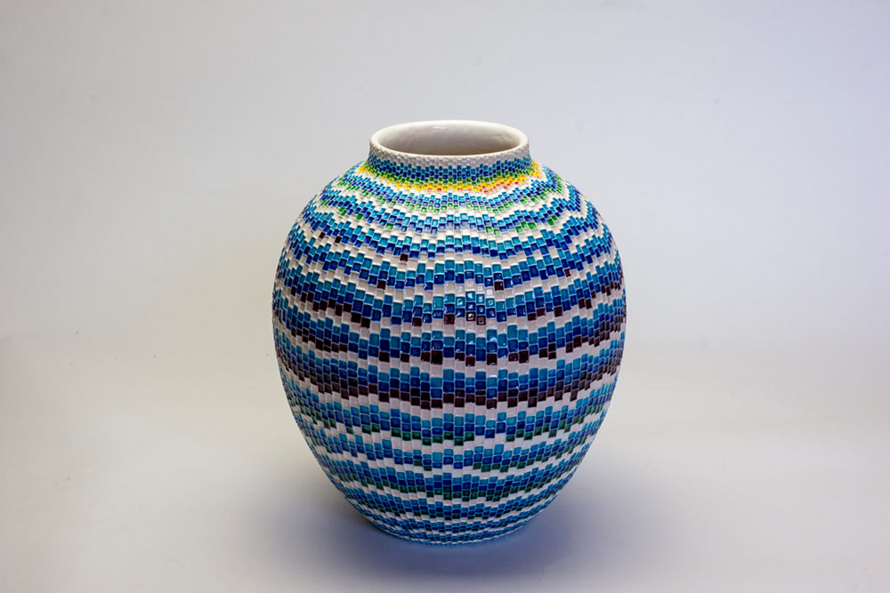 Dado que Europa tiene una tradición de arte en mosaico, el Museo Internacional de Cerámica de Faenza en Italia fue el primero en aceptar mis obras. Luego, mi serie Mosaico Neo, en la que utilicé activamente esmaltes tradicionales de plomo, fue seleccionada y ganó premios en exposiciones internacionales de cerámica en Europa, principalmente en Italia, España, Eslovenia y Austria, y muchas de mis obras ahora están en colecciones de museos. Esta actividad a principios de la década de 2000 no se entendía en absoluto en Japón en ese momento. Sin embargo, en 2019, fui seleccionado como miembro de la Academia Internacional de Cerámica en Suiza, y una obra seleccionada para una exposición de artesanía tradicional en Kioto fue recogida por el Museo de Arte Ariana. Luego, en los últimos años, los museos públicos de Shigaraki y la ciudad de Kioto, y la prefectura de Kioto han comenzado a recoger mis obras.