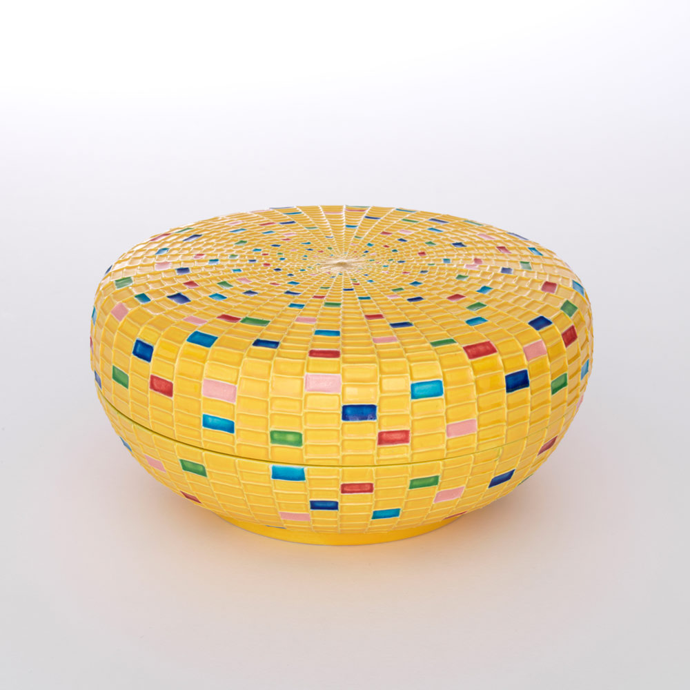 La serie Mosaico Neo es un experimento para liberar el dolor de los corazones de las personas del dolor de la discriminación combinando las ideas de diferentes esferas culturales a través de la afinidad del material y reflejándolas repetidamente como un espejo. El material es una mezcla de semiporcelana y la forma es típica de la cerámica de la ceremonia del té de Kioto. Dibujos de barro hechos a mano con un patrón similar al ‘amida-kuji’ japonés (un juego de azar). La calidad se mejora aplicando repetidamente un esmalte de baja temperatura sin plomo o que contiene plomo, que es similar en material a los mosaicos de colores de las iglesias italianas, y horneándolo repetidamente.