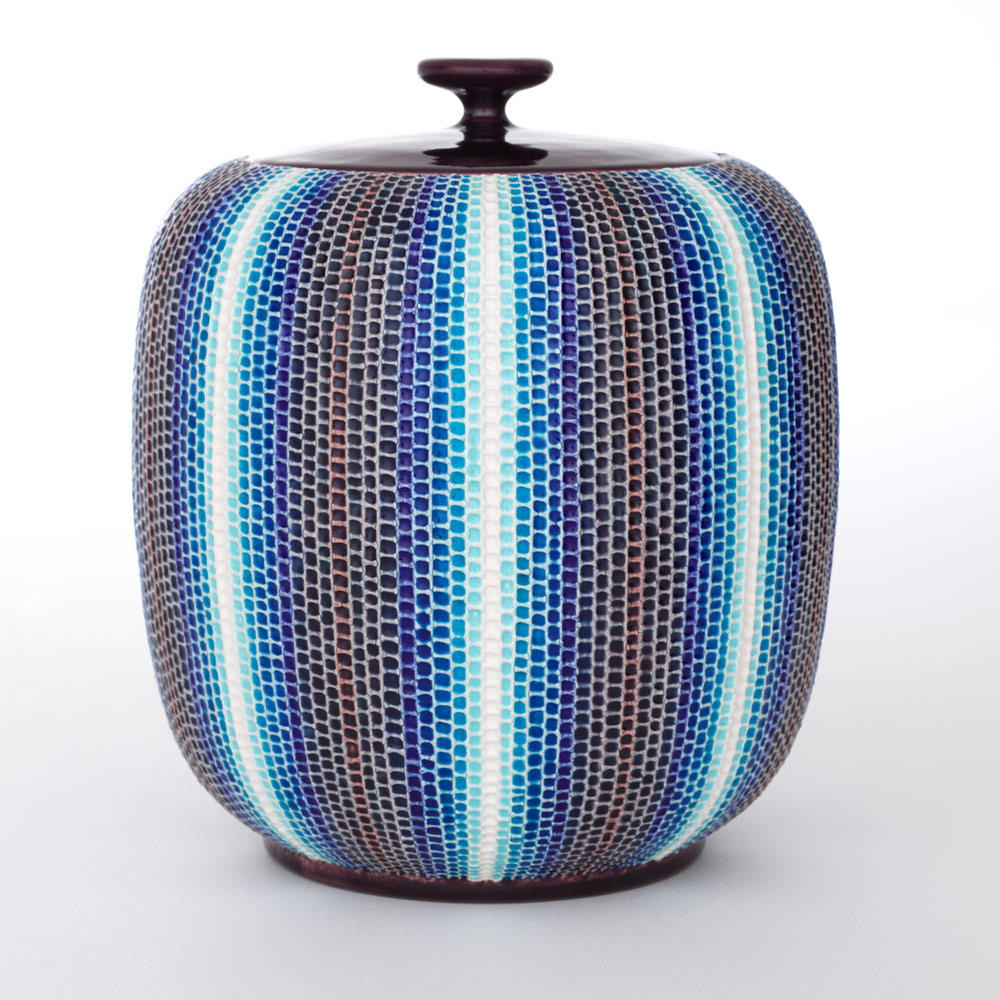El patrón tipo mosaico de los dibujos de barro hechos a mano está influenciado por la técnica de Yayoi Kusama de aliviar la ansiedad repitiendo la imagen continua de lunares. Cuando las líneas verticales se disponen de manera uniforme en 360 grados sobre un recipiente de cerámica y las líneas horizontales se conectan con la disposición rectangular aleatoria de 360 grados, una cierta sensación de plenitud y éxtasis llena el recipiente de cerámica. Esto también es eficaz como medio de expresión consciente del inconsciente.