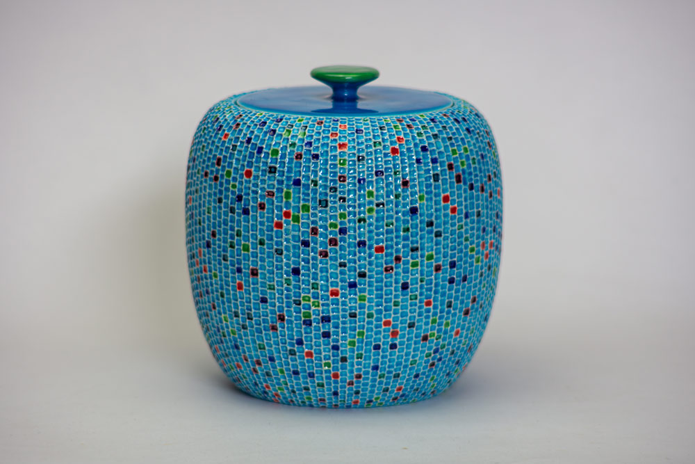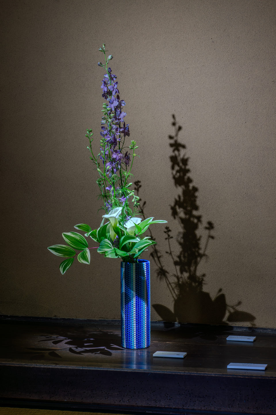 Florero de mosaico de Ruri-Kochi. “Exposición de la Asociación Kyoto Kogei en Iga 2024” @Sitio histórico Antigua escuela Suko (Kyu-Suko-Do), residencia Akai-ke, residencia Irimajiri-ke (Iga, Japón)