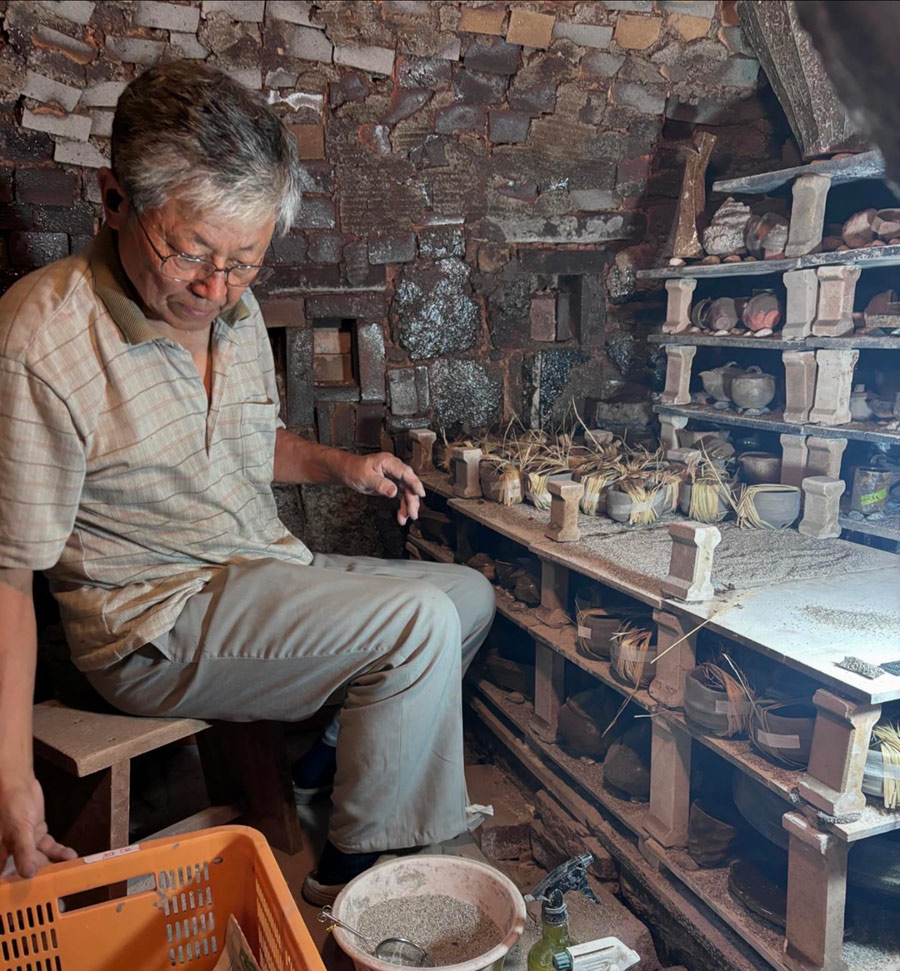 Su enfoque también une generaciones. Taiga trabaja tanto con alfareros mayores cuyas técnicas se perfeccionaron a lo largo de décadas de práctica, el más significativo siendo su propio padre Atsuo-san, quien, aunque menos activo en estos días, es una figura permanente en su taller, como con artistas jóvenes ansiosos por experimentar. Entre ellos se encuentra Kazuya Ishida, colega de Taiga-san, quien utiliza su gran influencia en las redes sociales para destacar la relevancia de Bizen en el mundo actual, habiendo trabajado en el Reino Unido y liderado proyectos como el ‘Oxford Anagama Project’.