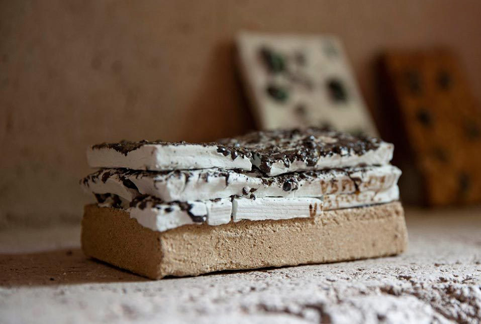 El trabajo cerámico de María Rico B. es el resultado de un meticuloso proceso de investigación creativo desarrollado dentro del territorio y del espacio que le rodea (su taller en un entorno de interés geológico). La observación, estudio y experimentación de materiales encontrados cuyas estructuras, texturas y configuración se ven transformados a través de procesos cerámicos que hacen surgir nuevas materias.