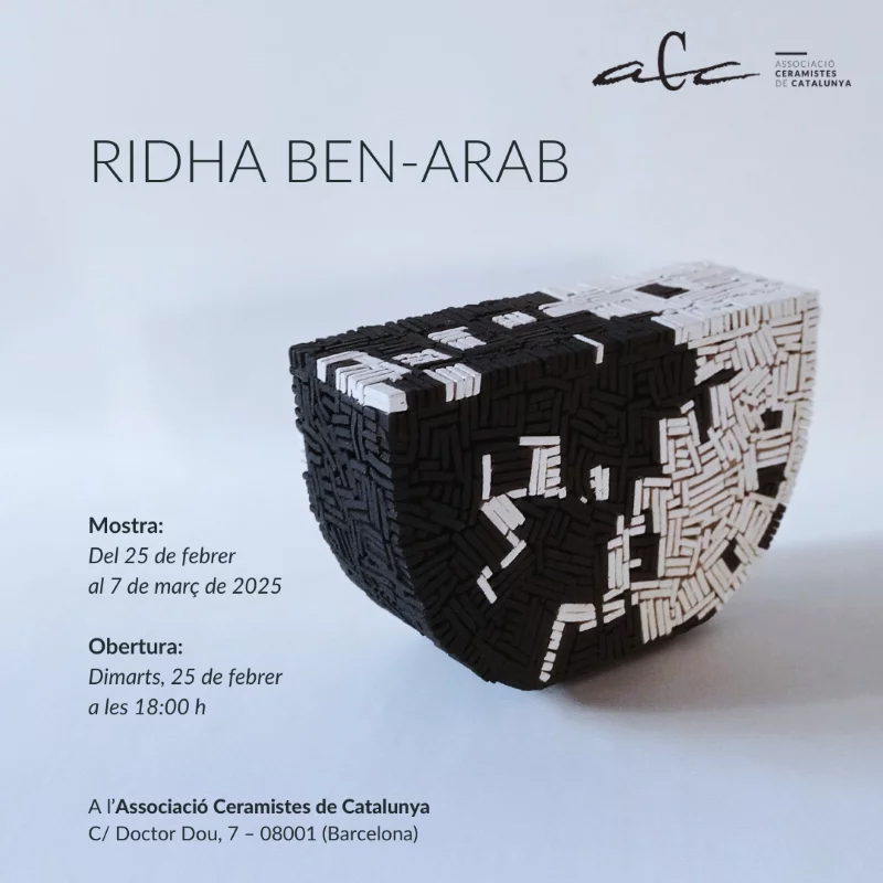 Del 25 de febrero al 7 de marzo de 2025 se podrá visitar en la sede de la Associació Ceramistes de Catalunya, en Barcelona, la exposición que mostrará la obra en cerámica de Ridha Ben-Arab