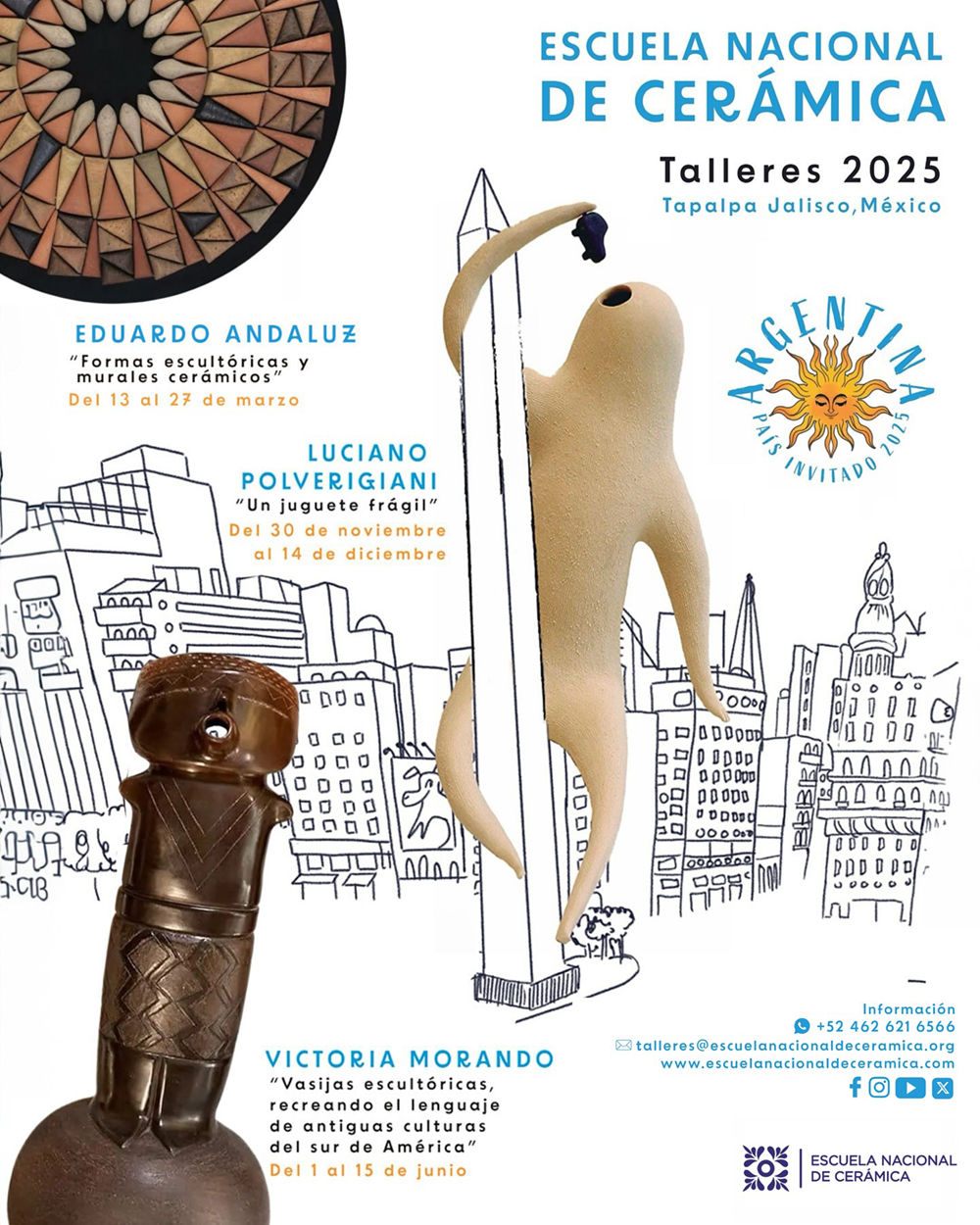 La riqueza alfarera y cultural de América Latina llega a la Escuela Nacional de Cerámica (ENC) con la inauguración del Ciclo Académico 2025, en el que Argentina es País Invitado. Los renombrados artistas argentinos Eduardo Andaluz, Victoria Morando y Luciano Polverigiani liderarán a lo largo del año tres talleres especializados en la creación de esculturas y murales, técnicas de antiguas culturas del sur de América y el modelado de personajes oníricos en un diálogo rigidez-movimiento.