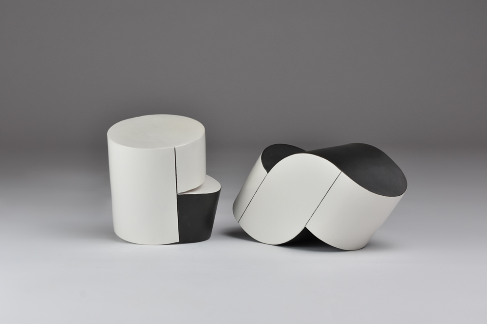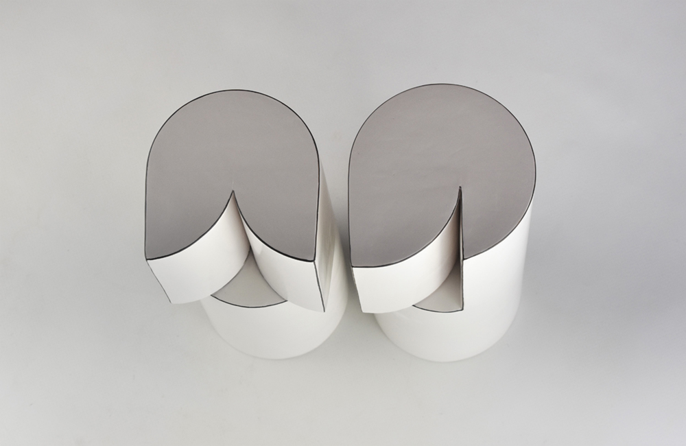 Anexos es un juego de formas que conviven mostrando un volumen y a veces su opuesto, en lo general se encuentran en un marco de acción en donde se utilizan elementos mínimos, estas primeras piezas están acabadas con dos colores. El blanco y negro las despoja de elementos decorativos y da más importancia a la forma, a la vez que realza la esencia de la pieza, haciendo que esta se abra a la luz potenciando una sensación de claridad fundamental para la obra.