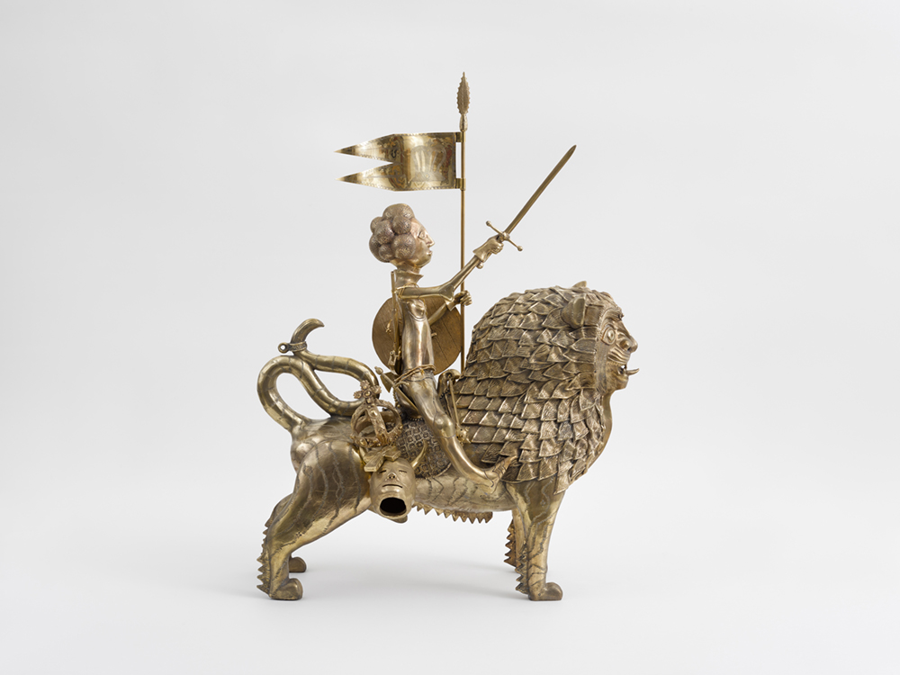 Grayson Perry. “Saint Millicent Upon Her Beast”, 2024. Bronce, 98,2 × 29,5 × 71 cm. (© Grayson Perry. Courtesy the artist and Victoria Miro.)