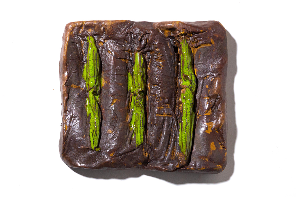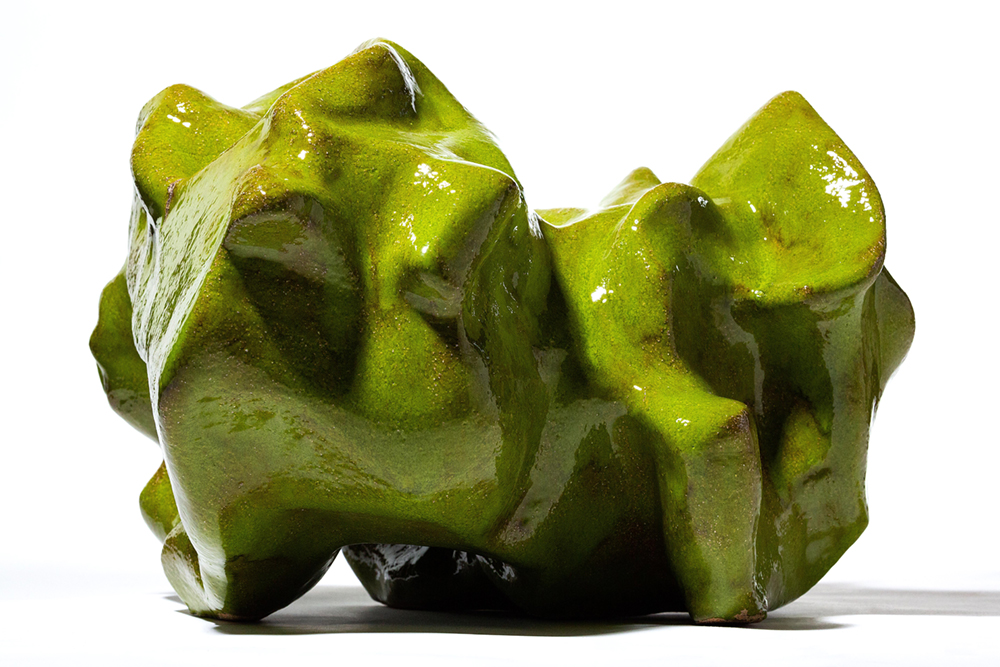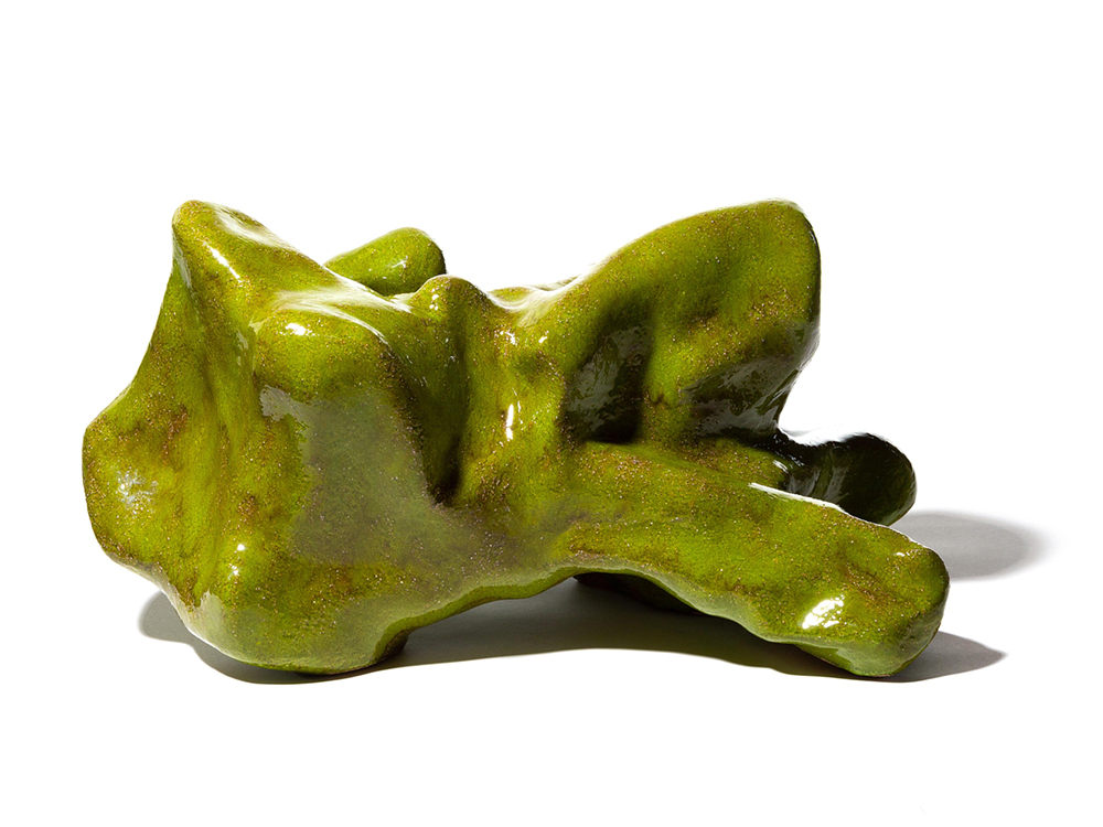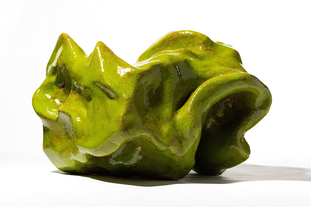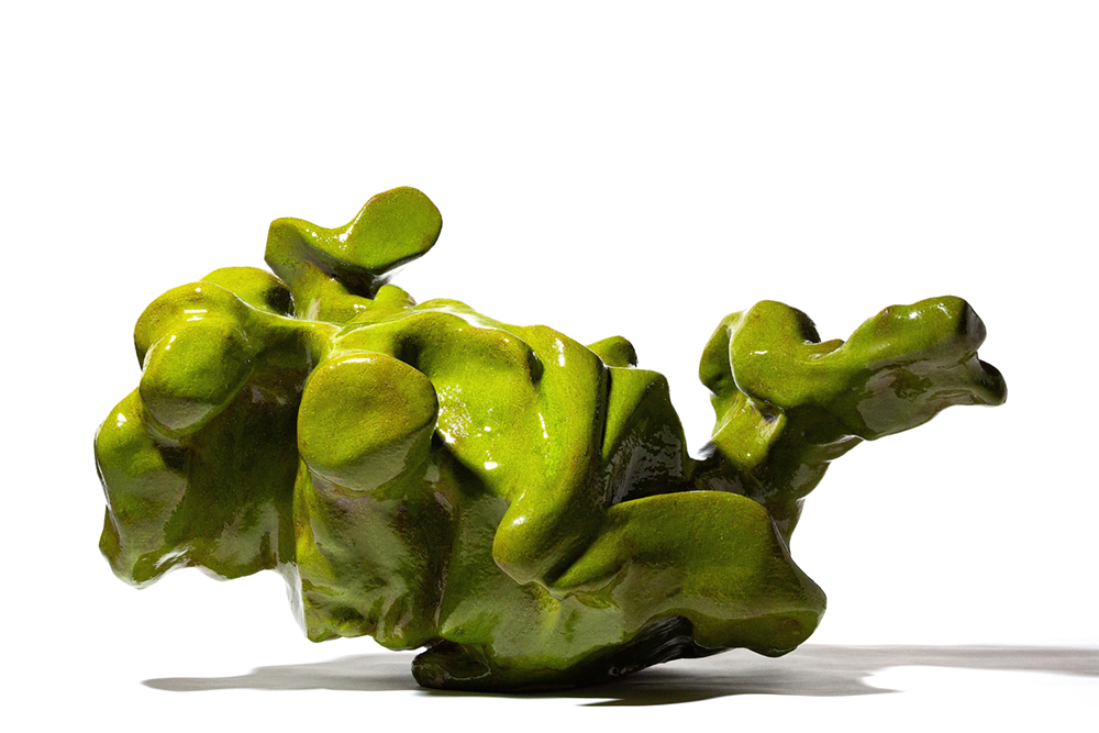 El esmalte de Aerts, verde y venenoso como la piel de un anfibio, crea un exoesqueleto que es a la vez armadura y piel, otorgando a las esculturas una sensualidad irresistible. Algunas obras evocan corales, otras condensan energía, pero todas oscilan entre lo estático y lo dinámico, lo ancestral y lo inmediato.
