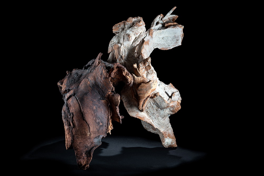 La cultura oriental y la educación que recibí en mi familia moldearon profundamente mi infancia, infundiéndome valores como la humildad, la cortesía, la paciencia, el esfuerzo por la excelencia, la sinceridad, el coraje, la armonía y la sensibilidad. A través del tiempo y la experiencia cultural, he forjado un sólido sentido de historia y valores. La serie “Madre e Hijo” explora la conexión entre mi madre y yo a pesar de la distancia física. Esta obra encarna vivencias personales y transmite sensaciones de movimiento, energía, amor, relaciones, honestidad e integridad. La energía emana del punto de intersección entre las piezas. La composición de formas gestuales abstractas está profundamente influenciada por los espacios vacíos que las separan. Mi objetivo es crear un retrato lleno de visión emocional y espiritual. En esta obra confluyen mis sentimientos hacia mi madre y el dolor por su enfermedad. El espacio negativo y las líneas expresan la relación entre las emociones internas y externas. Esta propuesta convierte los lazos emocionales y psicológicos en una expresión física que redefine el modernismo y su lenguaje visual, utilizando los materiales de manera interdisciplinaria. El uso del barro y el fuego encarna la esencia de la humildad y da forma a una declaración atemporal sobre el amor materno.