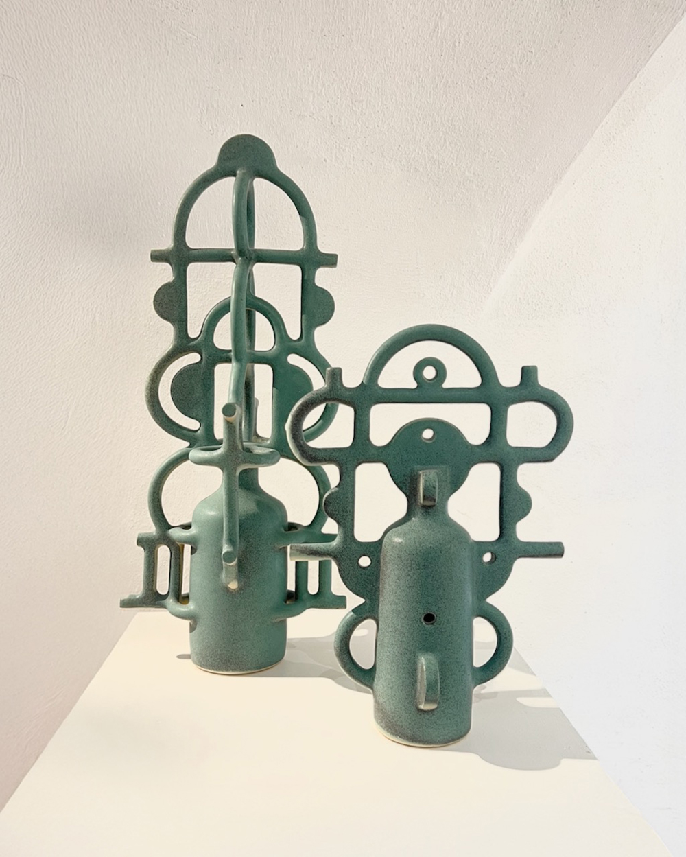 Aniana Heras, artista española afincada en Berlín, parte de formas tradicionales de la cerámica española para expandirlas hacia lo escultórico y arquitectónico. Con un enfoque intuitivo y gráfico, transforma el jarrón ancestral en estructuras abiertas y dinámicas que tienden puentes entre la cerámica funcional y la escultura contemporánea.