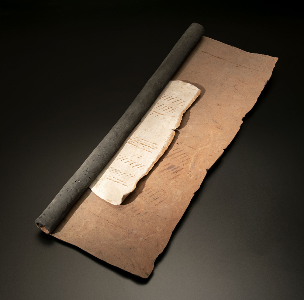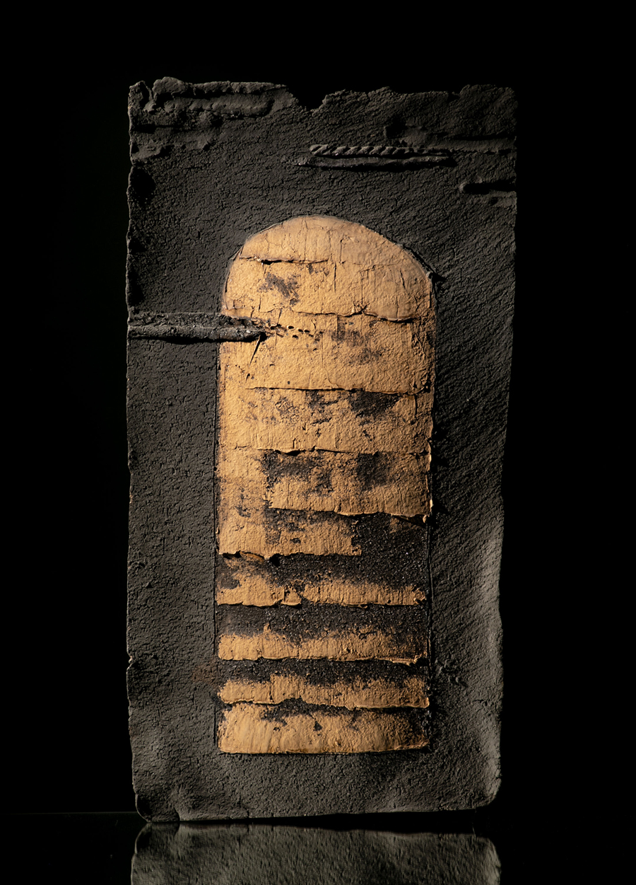 Al finalizar los setenta, opta por una dimensión más íntima y esencial. Retorna al barro como superficie primaria (el “foglio di creta”) y comienza a producir objetos inspirados en antiguos rollos manuscritos, con signos misteriosos, que evocan lenguajes perdidos. Estas “pseudoescrituras” anticipan sus libros-objeto, en los que une escultura y grafismo.