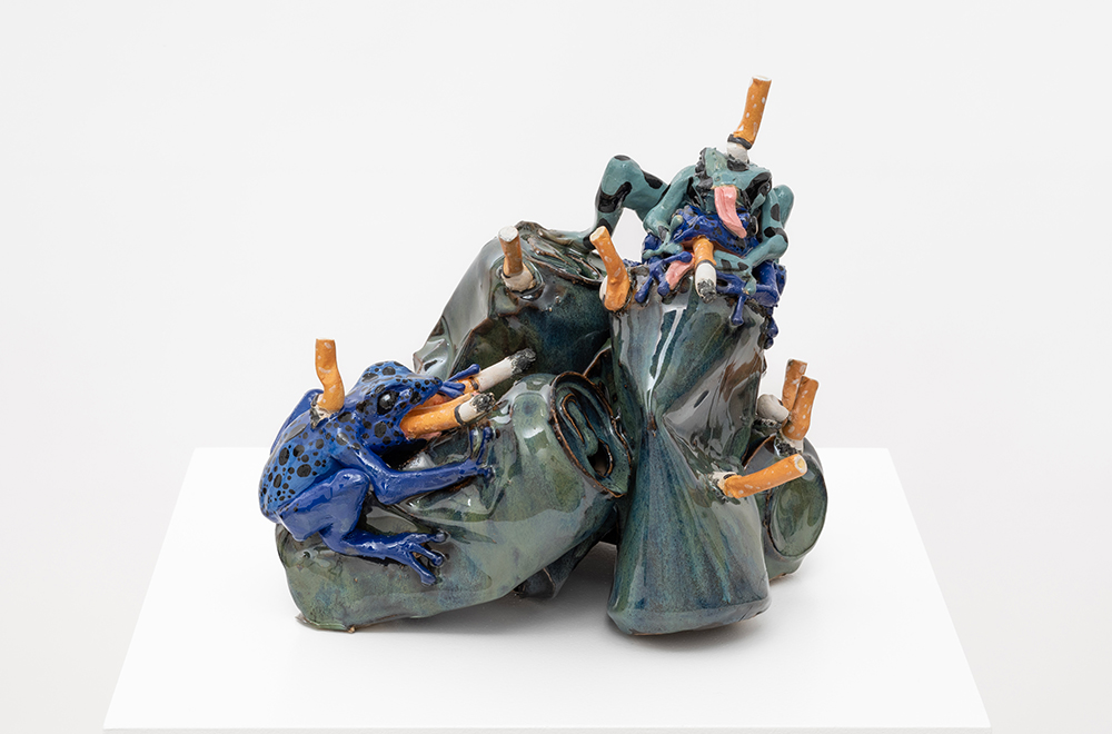 Lindsey Mendick (*1987, Londres, UK; vive en Margate, UK) trabaja con instalación, cerámica y escultura. Subvierte las asociaciones de la cerámica con la decoración y lo doméstico, creando monumentos a la cultura popular y a la experiencia femenina contemporánea.