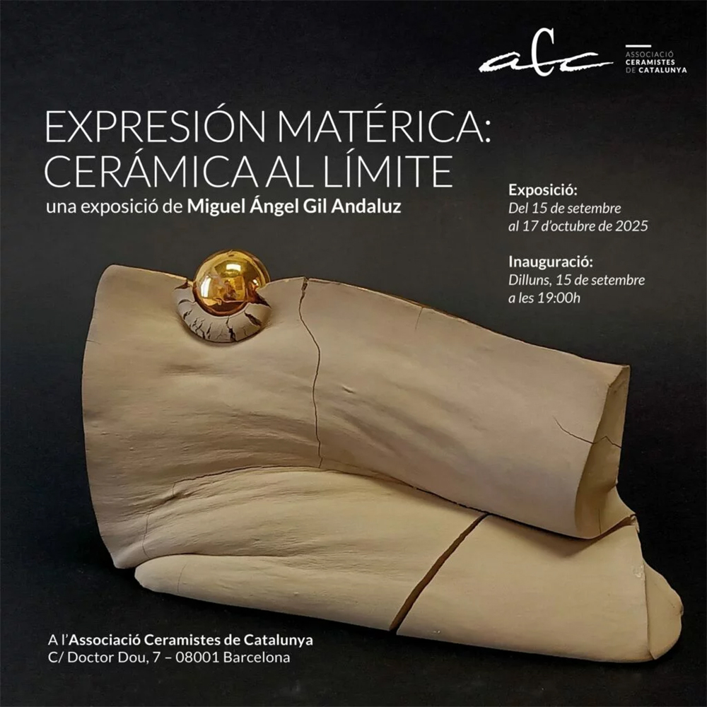 Del 15 de septiembre al 17 de octubre de 2025 se podrá visitar en la sede de la Associació Ceramistes de Catalunya, en Barcelona, la exposición titulada “Expresión matérica: cerámica al límite”, de Miguel Ángel Gil