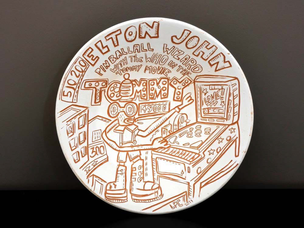 “Tommy” (Plato Unplugged 1), 2017. Plato de cerámica esgrafiada y cocida. 40 cm de diámetro.