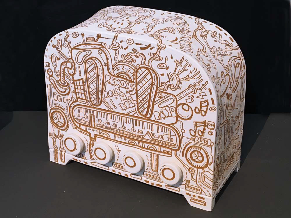 “Radio Activity”, 2018. Escultura de cerámica esgrafiada y cocida. 31 × 36 × 18 cm.