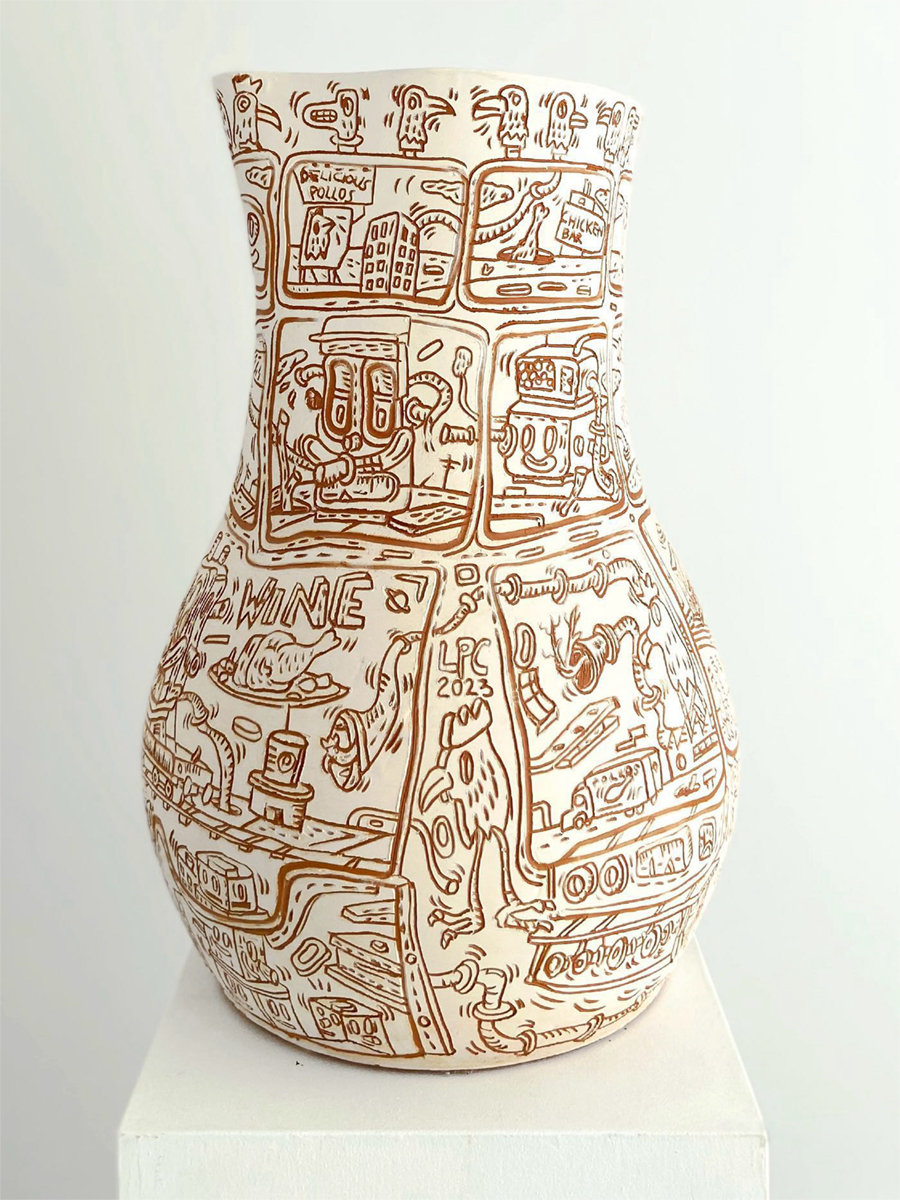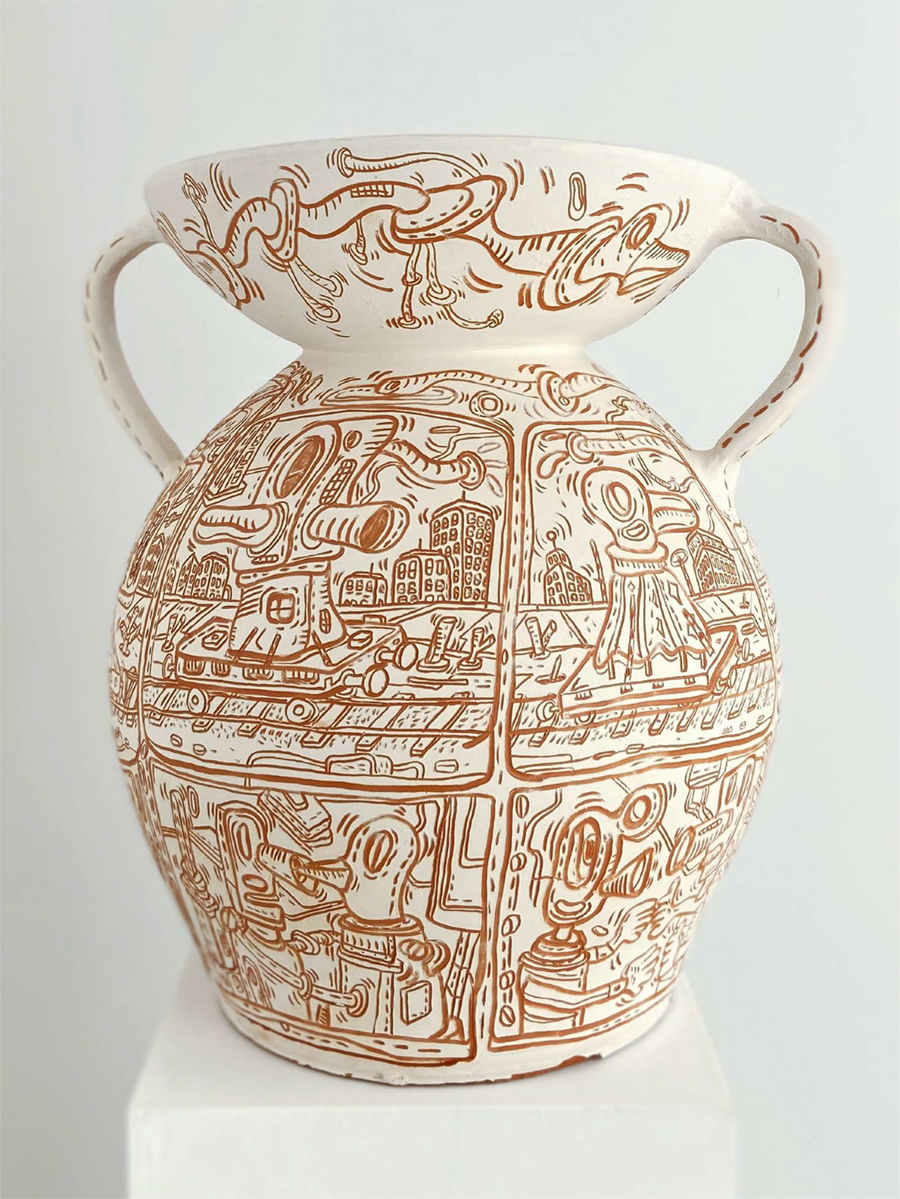 “Jungla, 3”, 2023. Jarrón de cerámica esgrafiada y cocida. 42 × 35 × 29 cm.