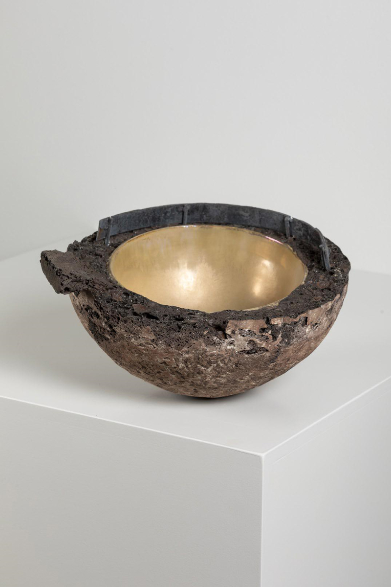 Biarnès trabaja con suelos de baja temperatura, pastas ferruginosas y porcelana, elaboradas de forma artesanal, incorporando hierro y acabados metálicos que consigue mediante cocciones en atmósfera reductora. Este rigor técnico, combinado con un profundo sentido expresivo, convierte sus piezas en puentes entre el oficio tradicional y la investigación artística contemporánea.