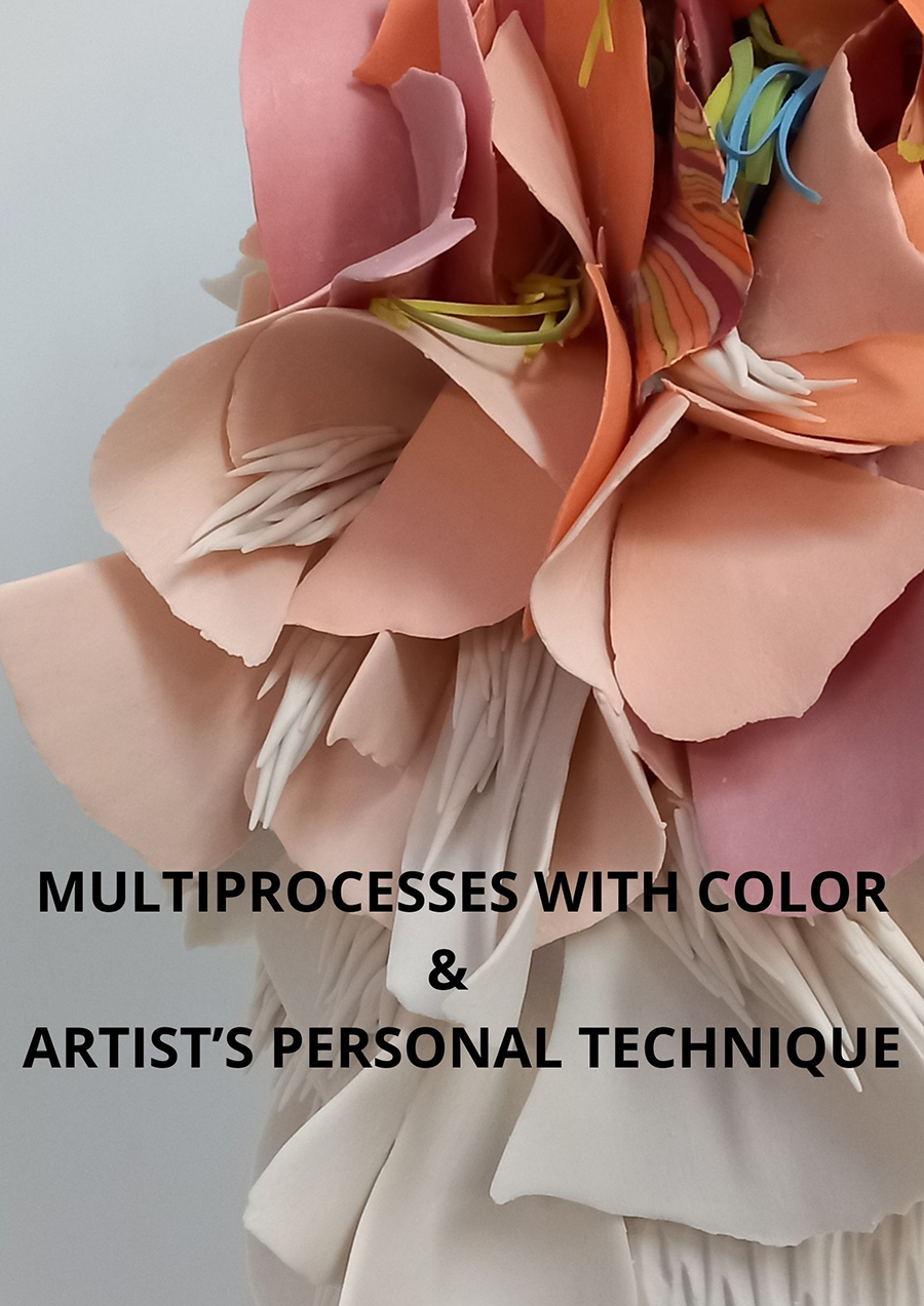 Más allá de la preparación de las pastas de porcelana de colores con tecnicas del Neriage, se utilizaran metodos inusuales en clave moderna. Metodos personales del artista en su linea escultórica, resultado de la investigación durante los últimos 20 años. La construcción comienza a partir de varios módulos compuestos en negativo con y sin el uso de los moldes.