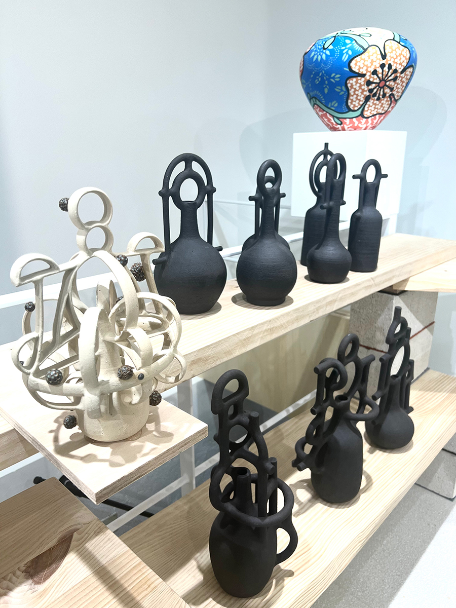 Cerámicas de Aniana Heras (en primer plano) y de Eloisa Cobo (al fondo)