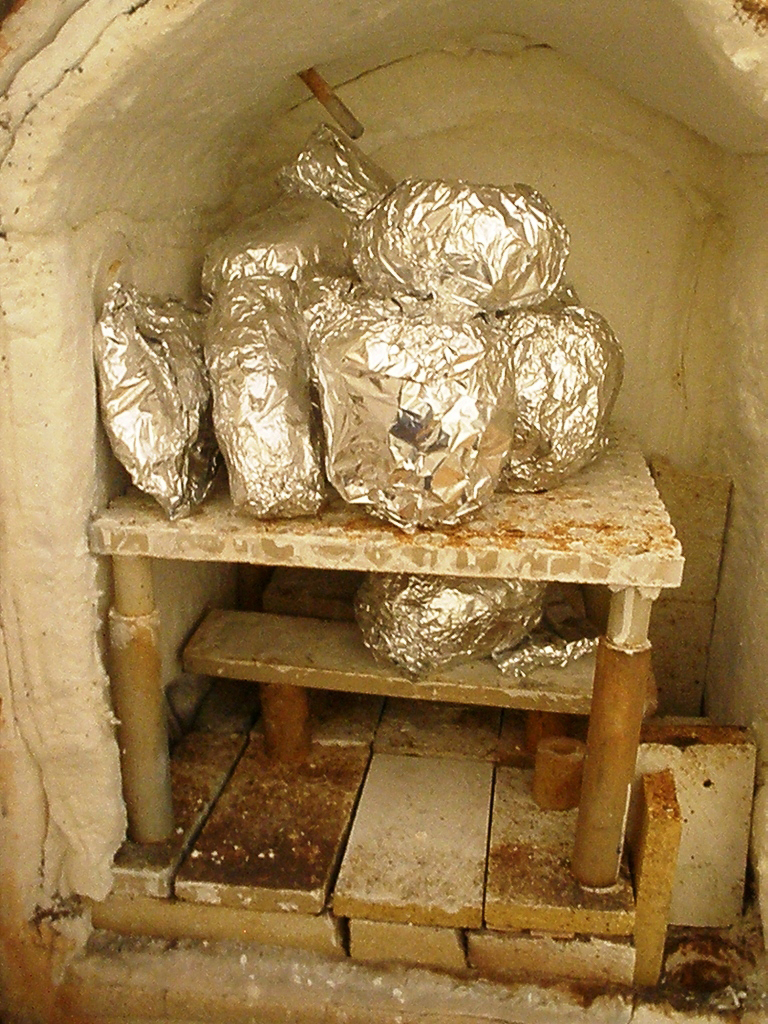 En cerámica, la técnica de cocción “foil saggar” se puede definir como cocción en gacetas o envoltorios hechos con papel de aluminio. La palabra inglesa “saggar” (salvaguarda) define genéricamente las gacetas o “capsulas” de cocción.