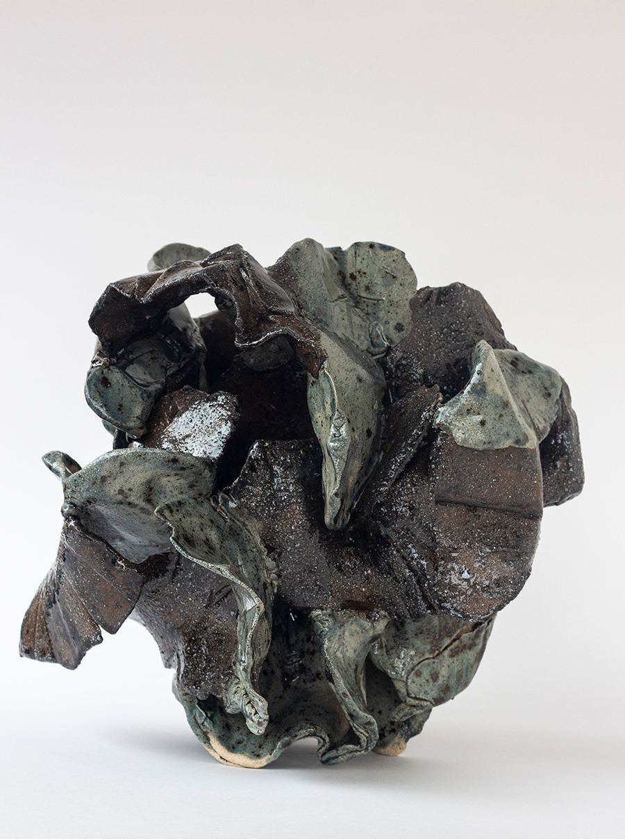 Las esculturas, tienden en conjunto hacia la monumentalidad, como si quisieran salir de la sala y aposentarse en el jardín. Son piezas donde lo orgánico, la textura, la naturaleza táctil y dinámica del material dibuja su propio registro, trazando la geografía de la pieza.