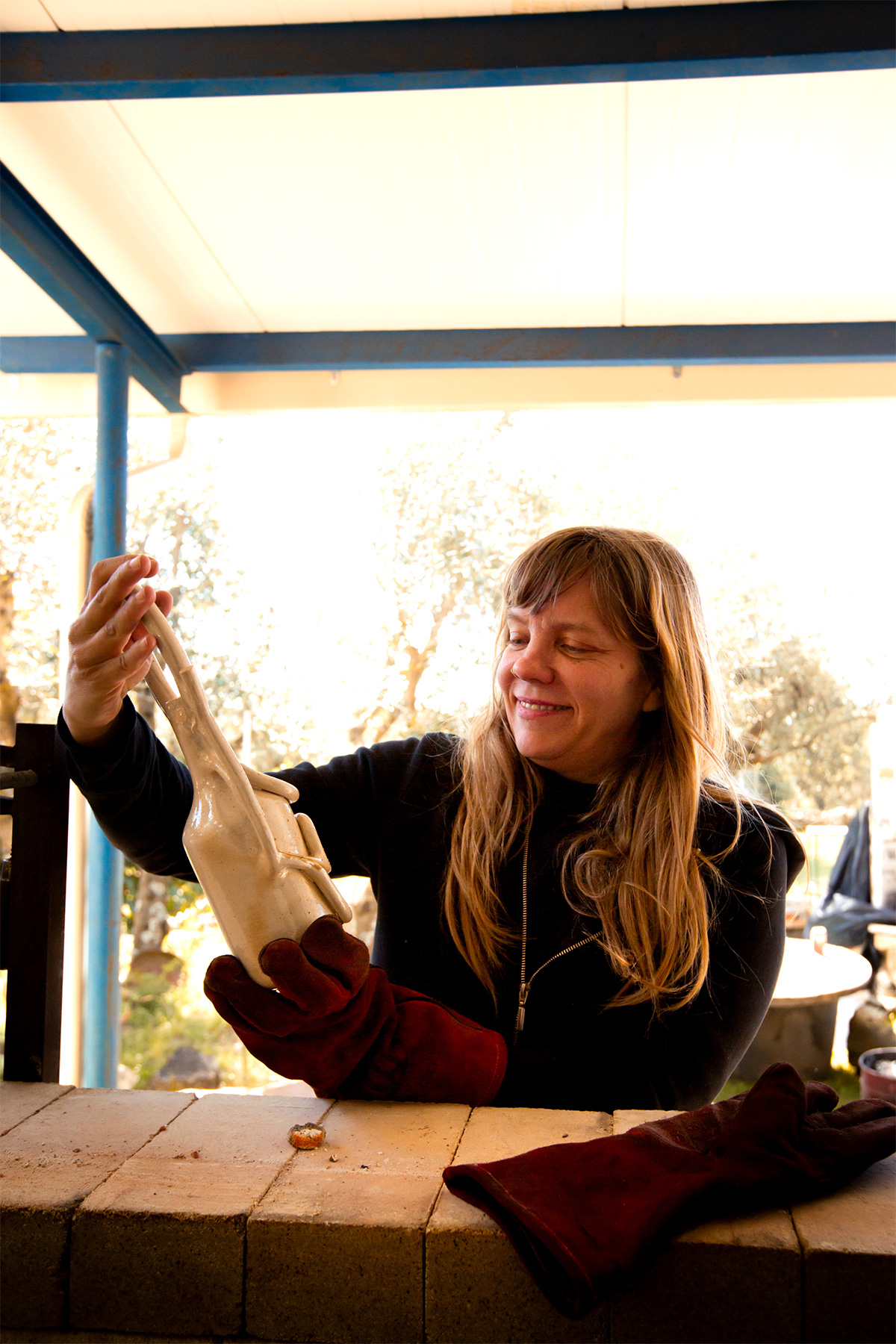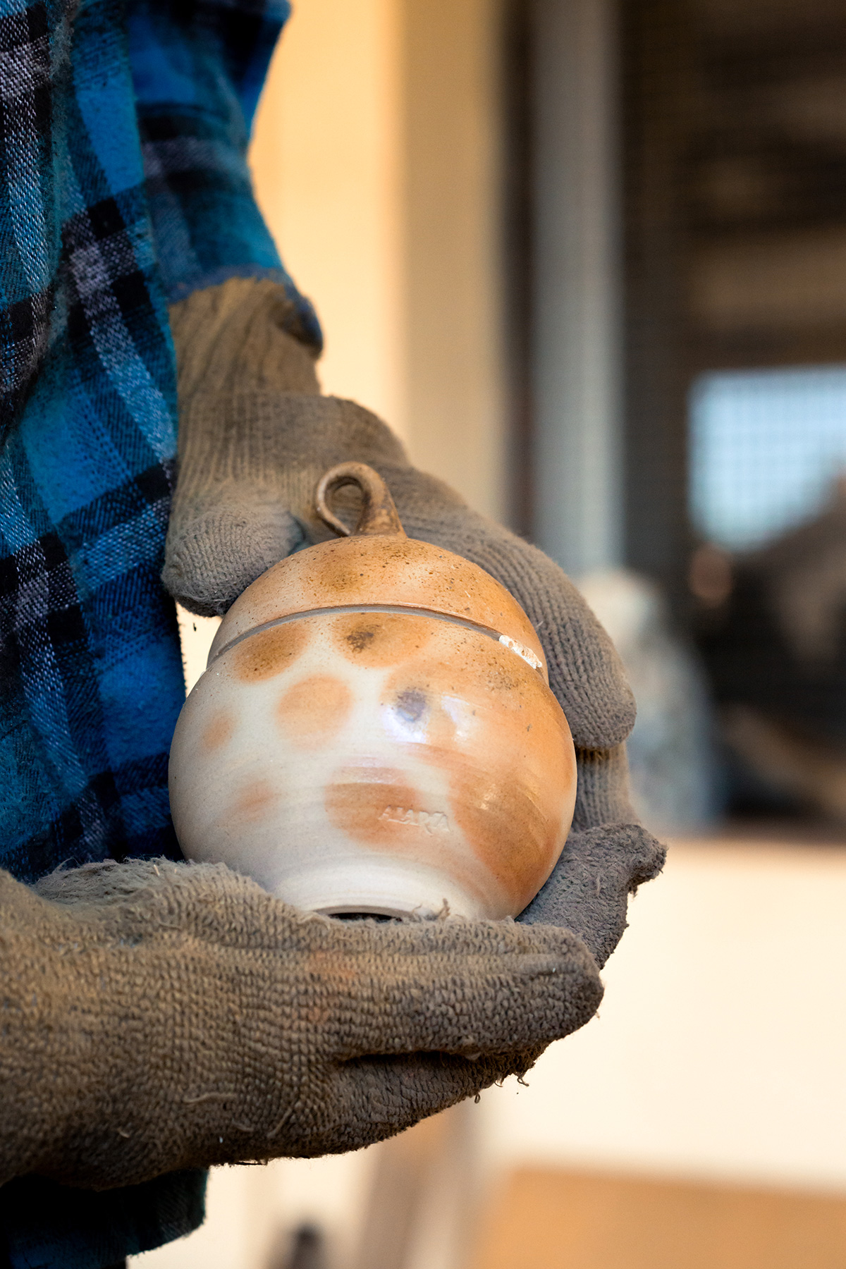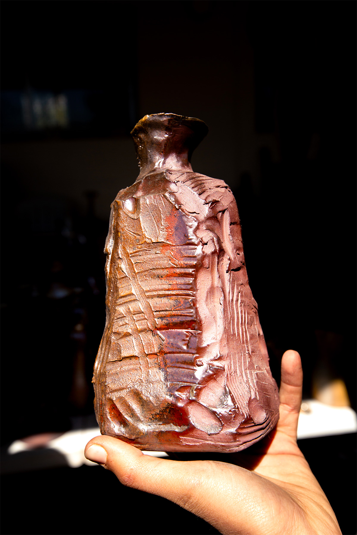 En esta cocción ha habido muchas pieza sin esmalte, como esta de Andrea Tenorio, en la que puede verse el efecto de la ceniza natural producida por la propia cocción