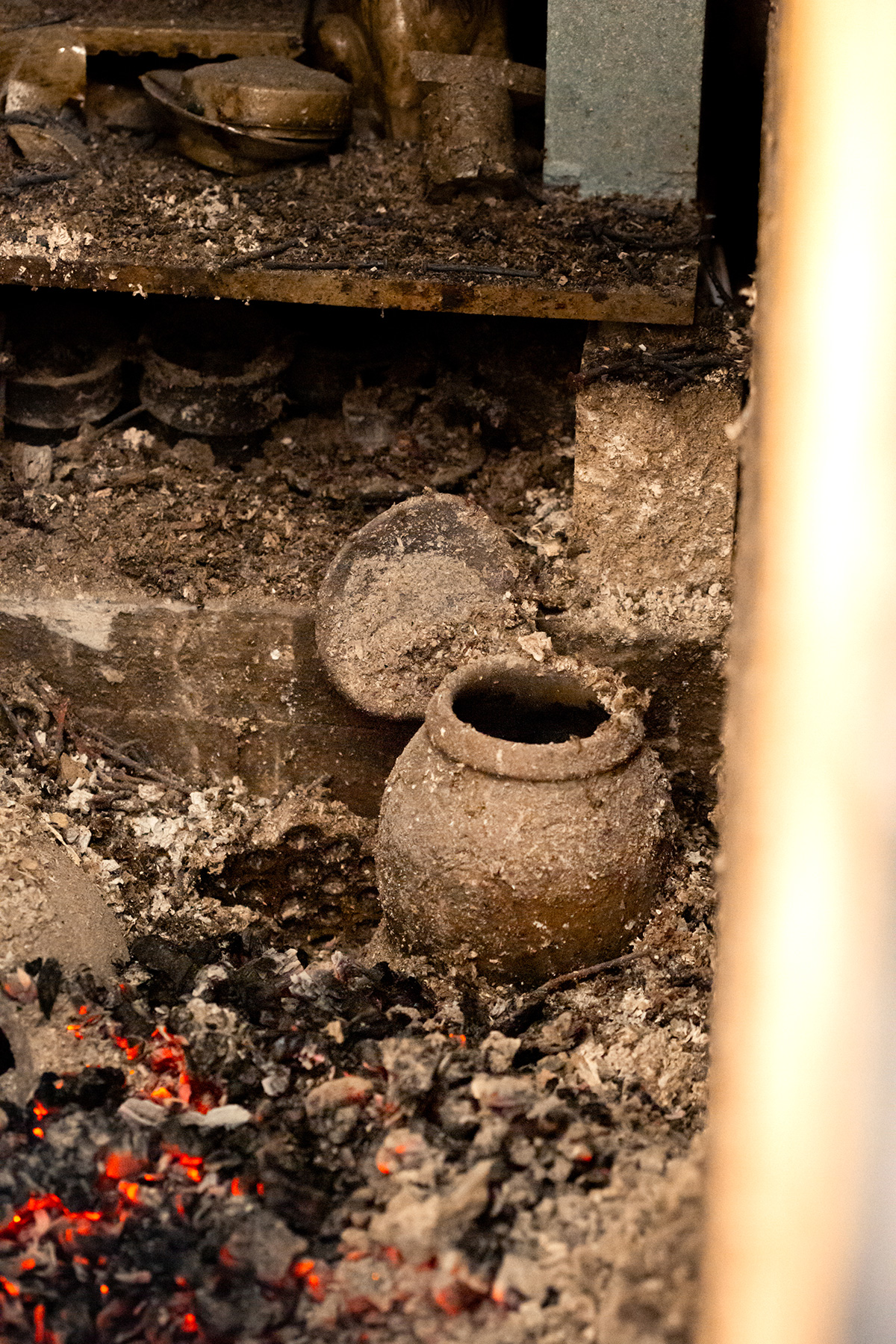 También es normal asistir a algún imprevisto (siempre ocurre): una pieza se cae sobre la que tiene al lado, se pega o chorrea el esmalte sobre otra. Y esta bien que ocurran estas sorpresas, que no siempre son malas y, en algunas ocasiones, te deparan uno de esos regalos que solo las cocciones de leña te dan (es lo que en Japón denominan Yōhen: los imprevistos que hacen que una pieza sea especial).