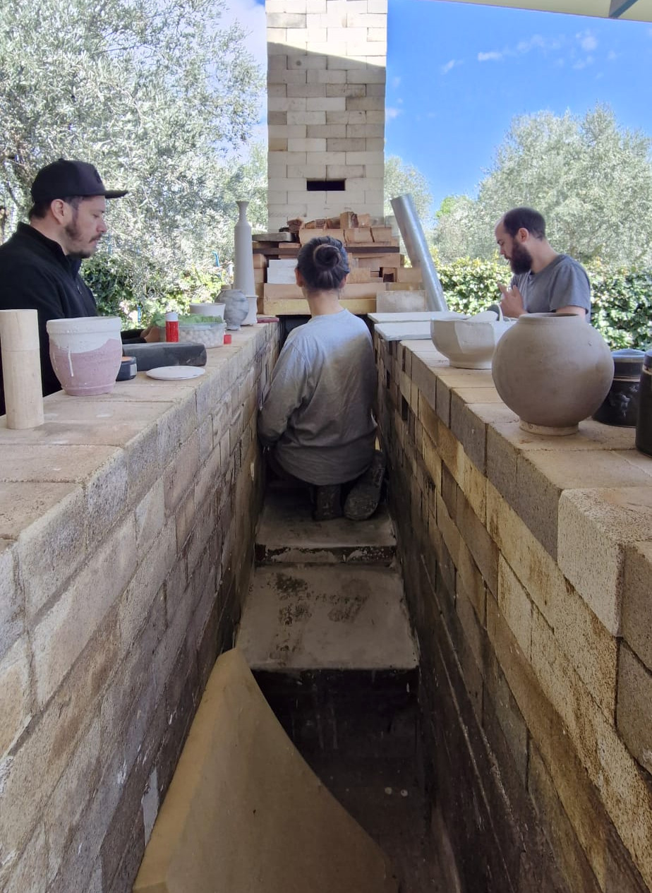 En esta ocasión compartimos la cocción con nuestros amigos de Alaría (Alba, Kevin y Andrea) y con Aniana Heras, también había piezas de Vladimir de la Rosa, aunque no pudo participar en la cocción. Unos días llenos de emoción, cerámica, charlas y comunidad, la otra gran ventaja de este tipo de cocciones.