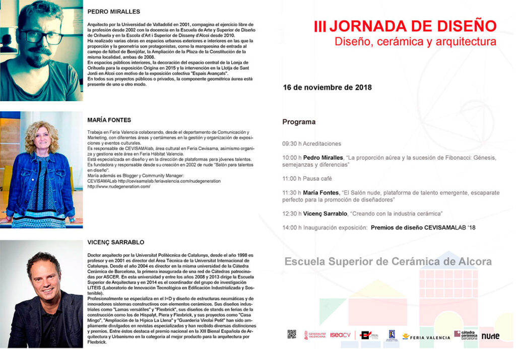 El 16 de noviembre se celebrará en la Escuela Superior de Cerámica de Alcora, Castellón, la “III Jornada de Diseño. Diseño, cerámica y arquitectura”