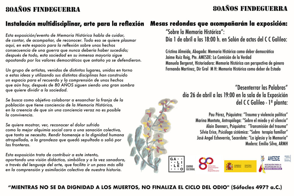 Del 1 al 28 de abril se puede visitar en el Centro Cultural Galileo, de Madrid, la exposición colectiva titulada “80 Años Fin de Guerra”, en la que participa la ceramista Pilar Soria