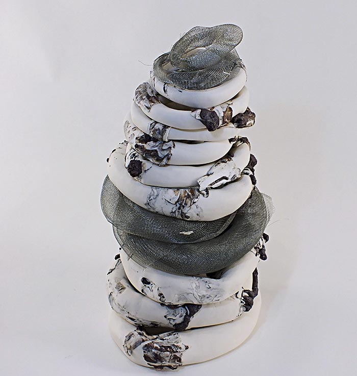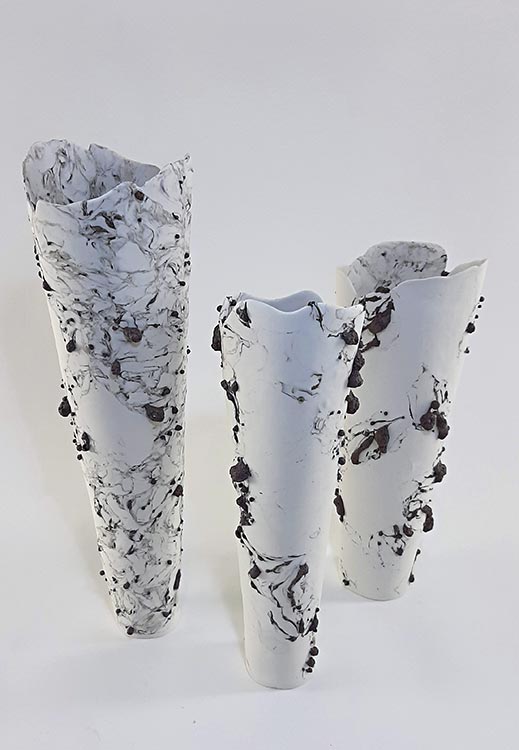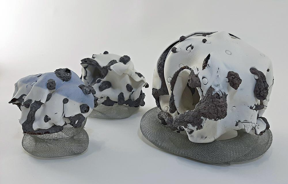 Mi obra en este momento, se caracteriza por la utilización de la porcelana y las pastas expansivas. Estudio las posibilidades de esta materia, su fuerza, su potencial, su esencia y belleza y me sorprende el diálogo que se establece entre ambas.