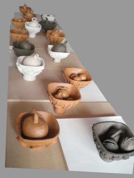 Con la magia de la cerámica, tan domésticamente maleable, puedo transformar mi universo particular de mil maneras diferentes, tanto en las formas como en los colores que utilizo, dando pié a que mi imaginación no cese en el empeño de obtener la obra finalizada. Por sistema, no suelo pensar a priori lo que en el proceso iré construyendo, ya que dejo que mi subconsciente, almacén de mis sentimientos, haga su camino.
