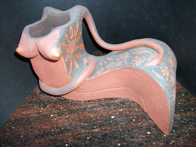 La diversidad de materiales y técnicas la convierten en un medio de expresión de infinitas posibilidades y el elemento exclusivo de su identidad- el fuego-con su alquimia transmutadora que aplicado a ésta técnica no la destruye como es característico de este elemento sino que la hace más resistente i bella hacen de la cerámica el medio plástico por el que siento mayor afinidad.