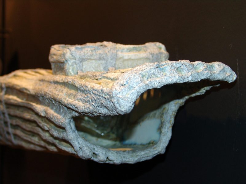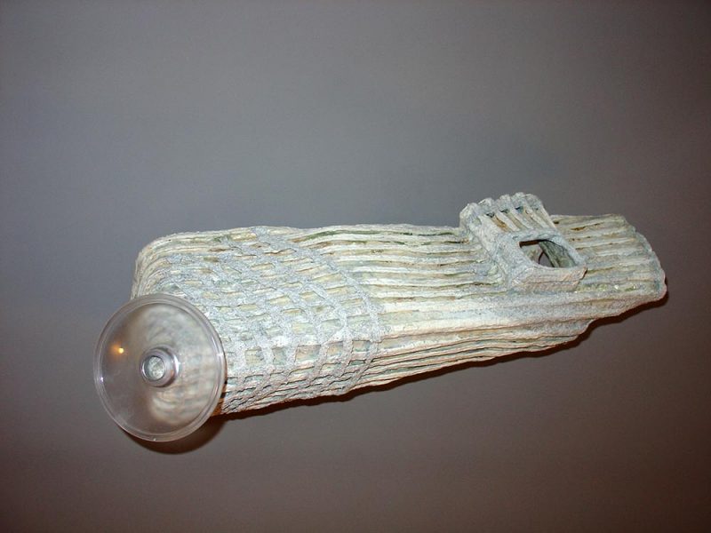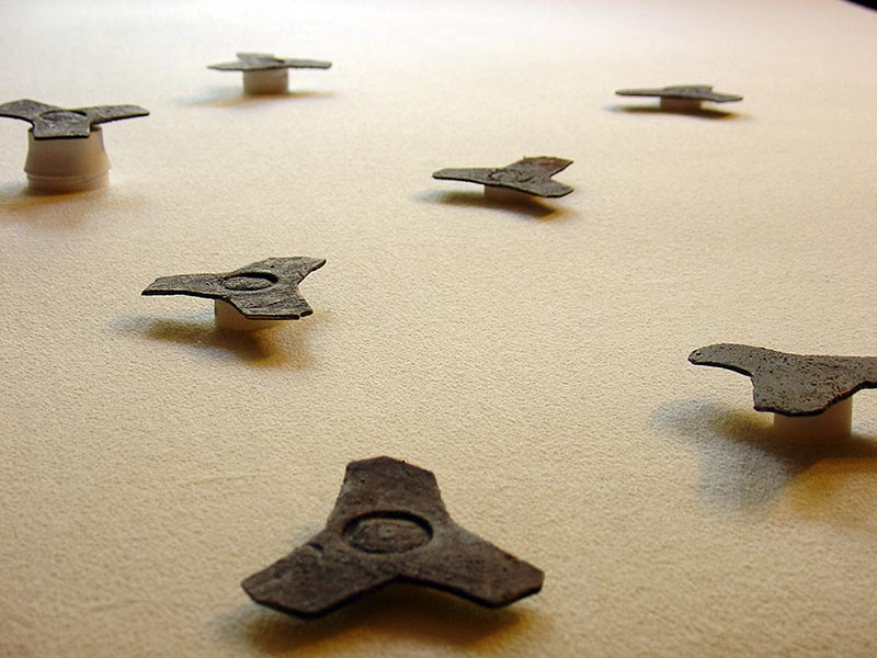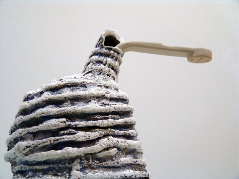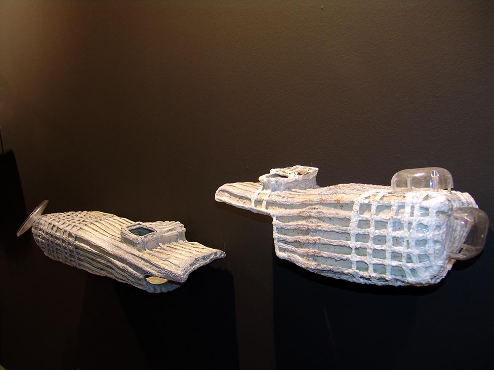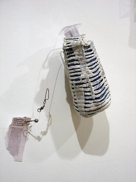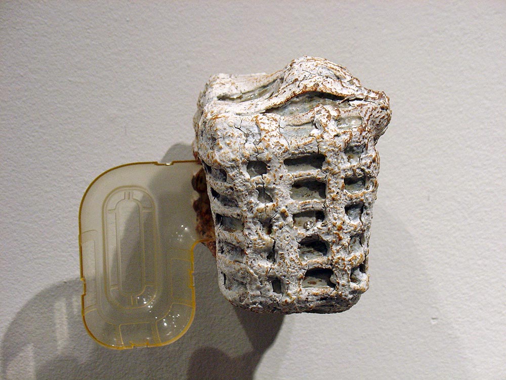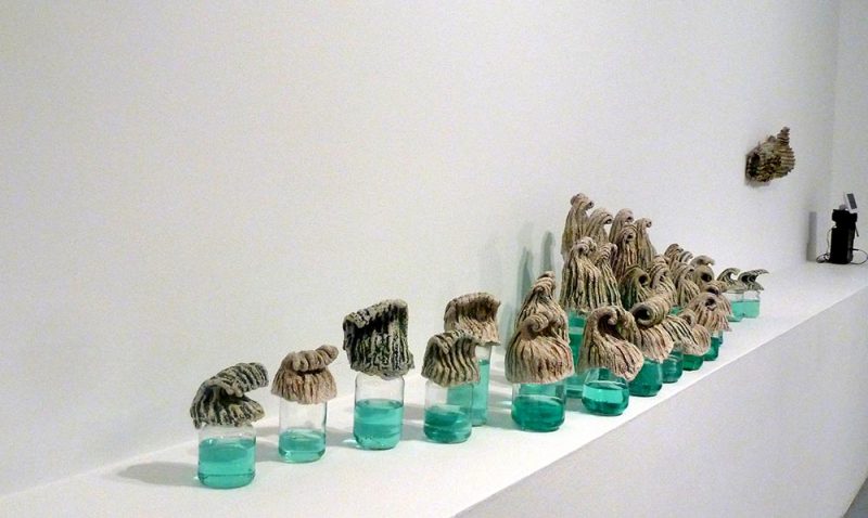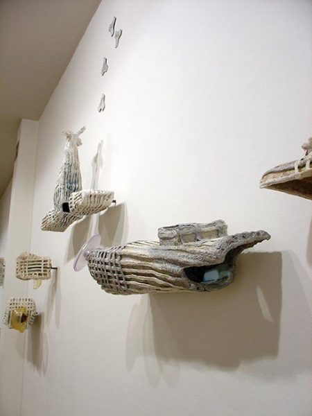 En instalaciones como “Ajuaj” este diálogo entre arcilla y otros materiales se complica: la historieta y el plástico introducen, junto con el gres, un nuevo debate.