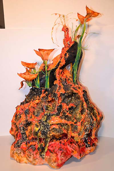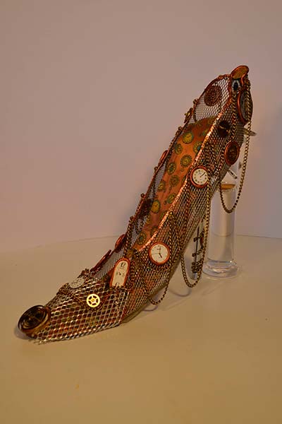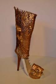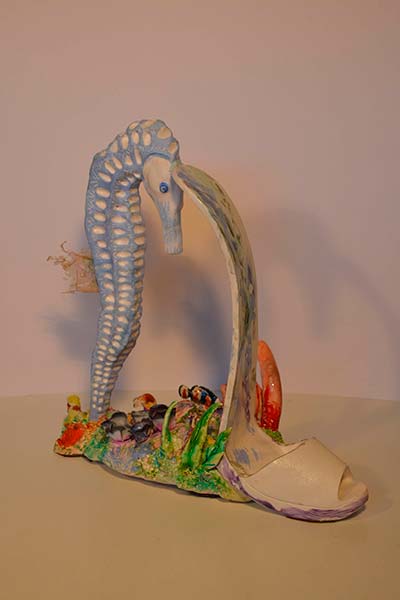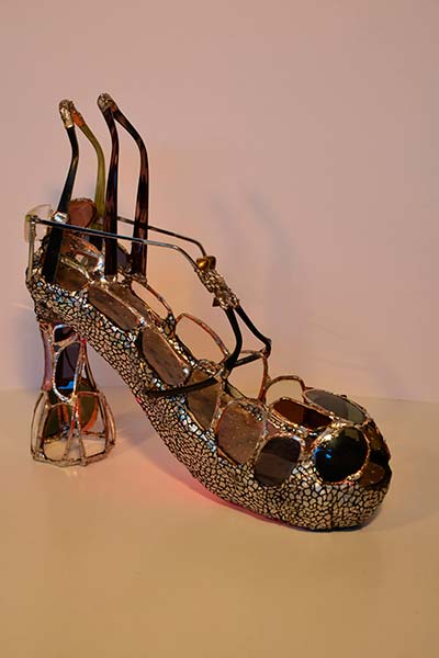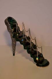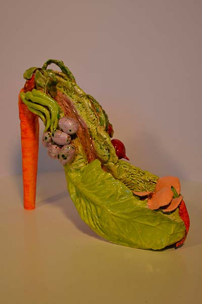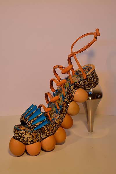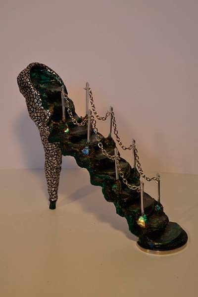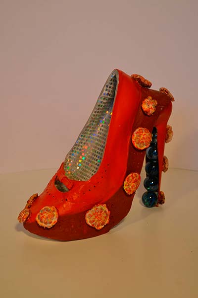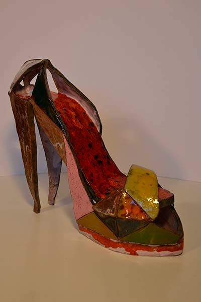 Actualmente la imaginación me ha llevado a la creación de innumerables obras en cerámica, reciclaje, vidrio, etc, la temática en mis últimas obras es el zapato de tacón femenino.