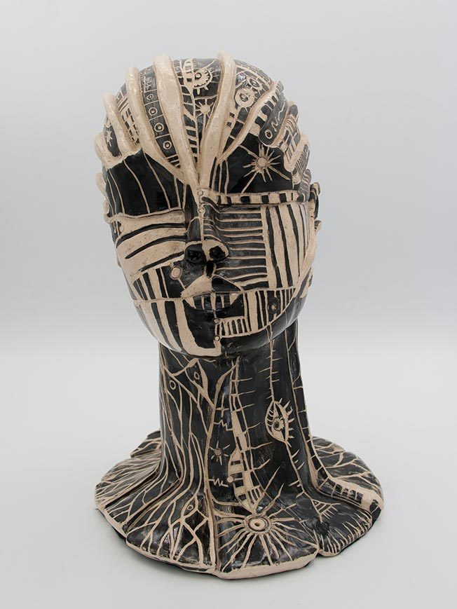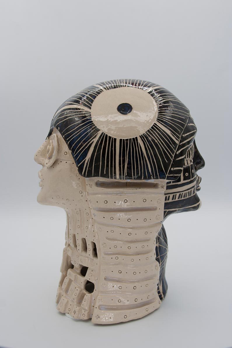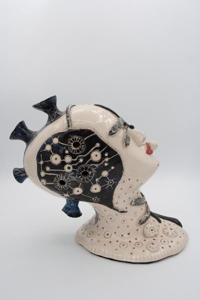 Mi interés por la cerámica nace de la riqueza de posibilidades que ofrece como medio de expresión, en su diversidad de técnicas y plasticidad. El gres, elegido por su solidez, se convierte en el material ideal para mis esculturas, permitiéndome explorar la relación entre lo humano y lo mecánico.