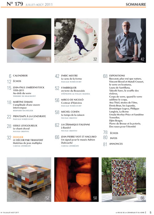 Sumario de la revista francesa La Revue de la Céramique et du Verre