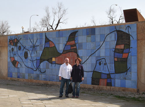 Sara González y Wladimir Vivas frente al mural de Joan Miró y Josep Llorens Artigas en el Museo de Arte de Zürich